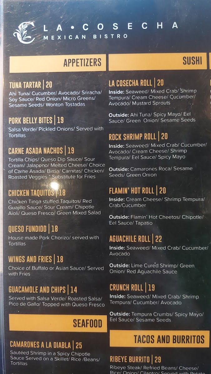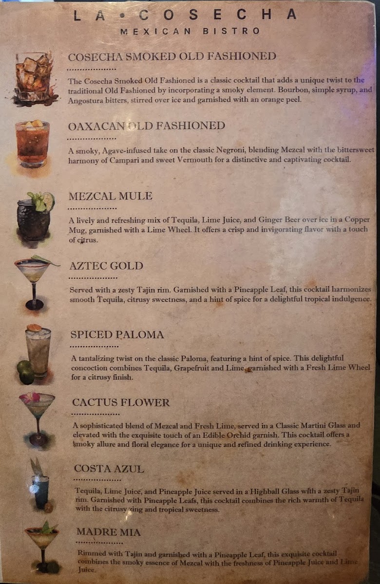 At La Cosecha Mexican Bistro Menu, you'll find a delightful blend of bold flavors and comforting favorites that transport you straight to the heart of Mexico. From sizzling fajitas to fresh tacos, every dish is crafted with authentic ingredients, bringing a taste of tradition to Baldwin Park. The menu offers a vibrant array of options, whether you're in the mood for something light like guacamole and chips or craving a hearty meal with their famous enchiladas or carne asada. Don't miss out on their unique margaritas, perfect for pairing with any of the savory dishes. Whatever you choose, you're in for a satisfying dining experience with flavors that speak to the rich culture of Mexican cuisine.